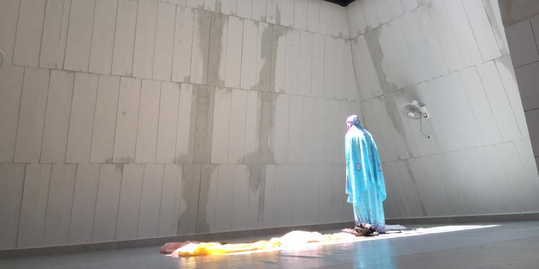 "Kalau hujan, airnya merembes ke dalam dari atas, kena mukena," komentar perempuan tua yang datang belakangan itu kepada perempuan yang menjemur mukena-mukena tersebut.