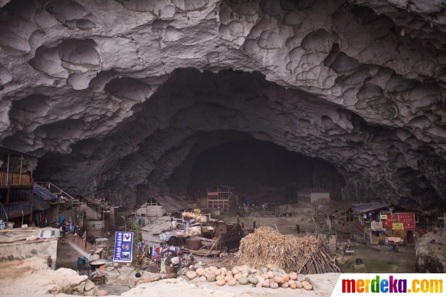 Aktivitas warga Desa Zhongdong di dalam gua.